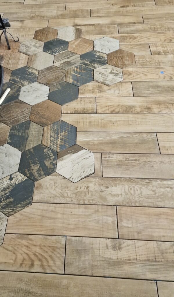 Pose d’un carrelage hexagonal et imitation parquet